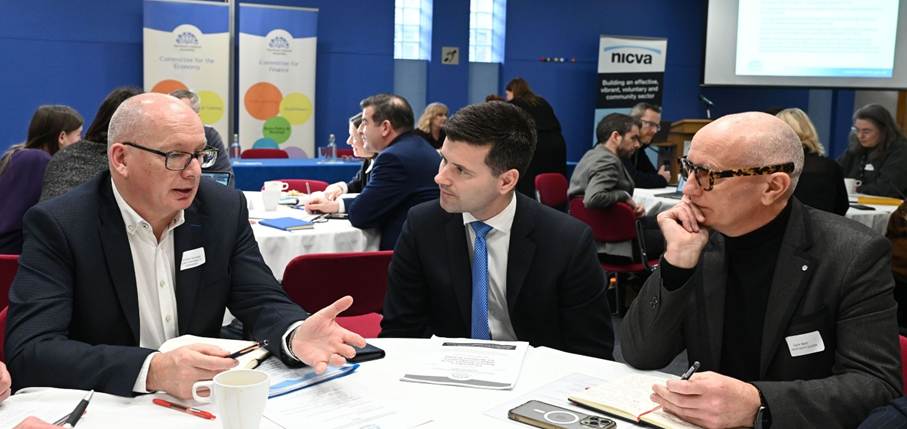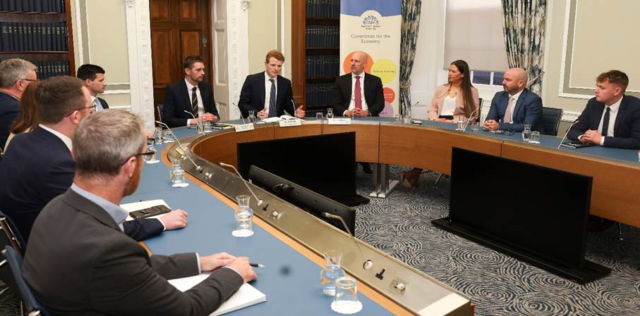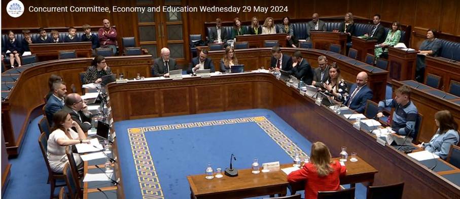 Members hearing evidence on the cost of doing business at the joint Committee event at NICVA. - The Economy Committee also considered the implications for businesses of the impact of other matters beyond the control of the Executive including regulatory divergence in the UK internal market and the application of US tariffs.