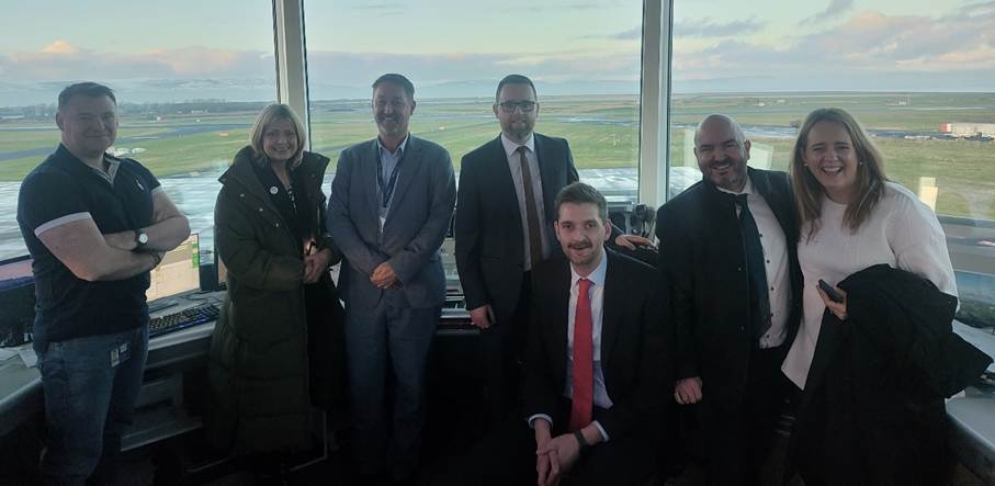 Members meeting with City of Derry Airport Chief Executive and staff in the control tower