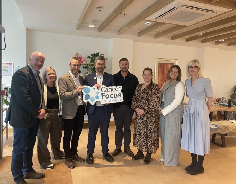 Pictured: Staff and volunteers of Cancer Focus NI with Philip McGuigan MLA, Danny Donnelly MLA and Colin McGrath MLA